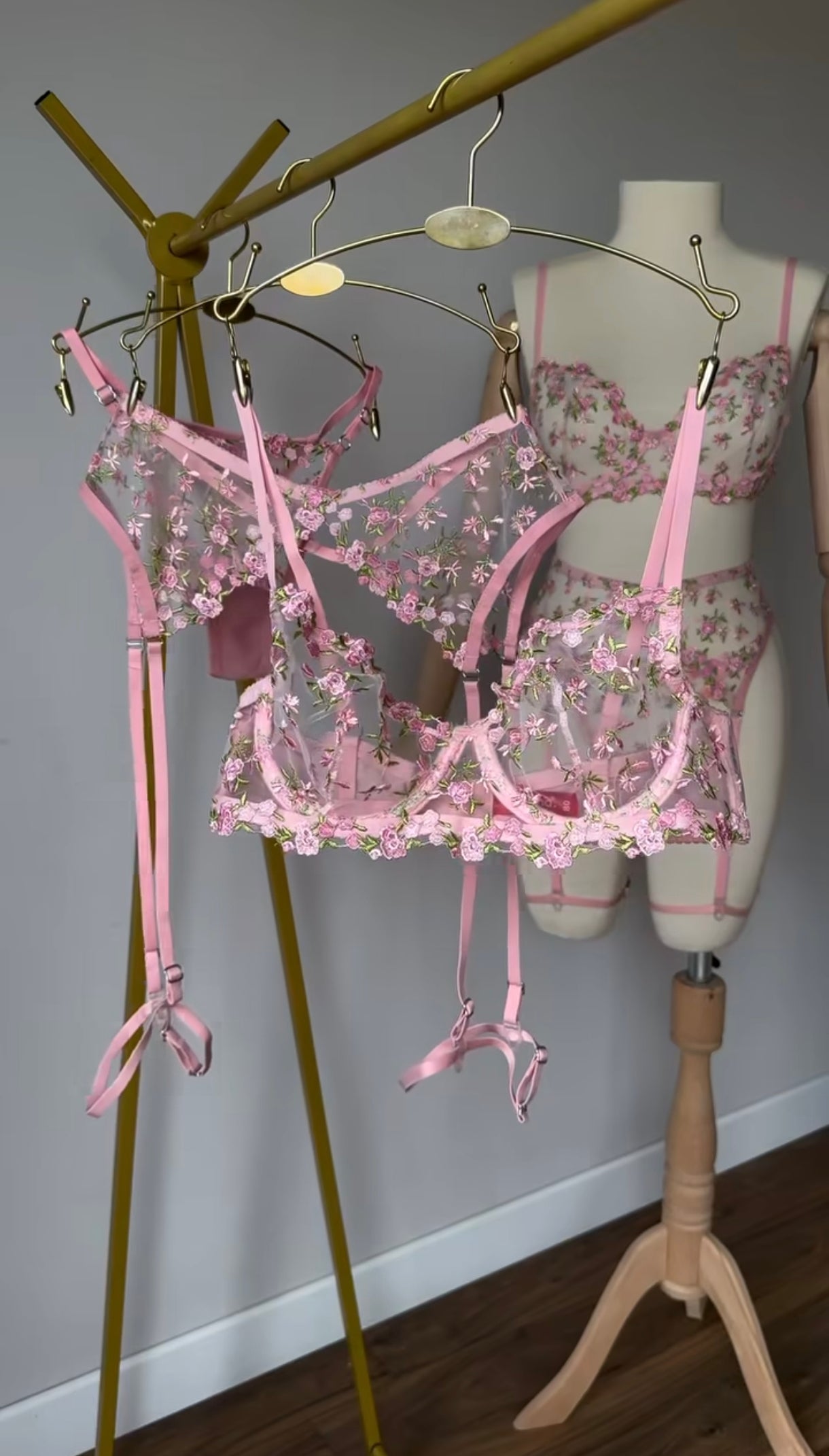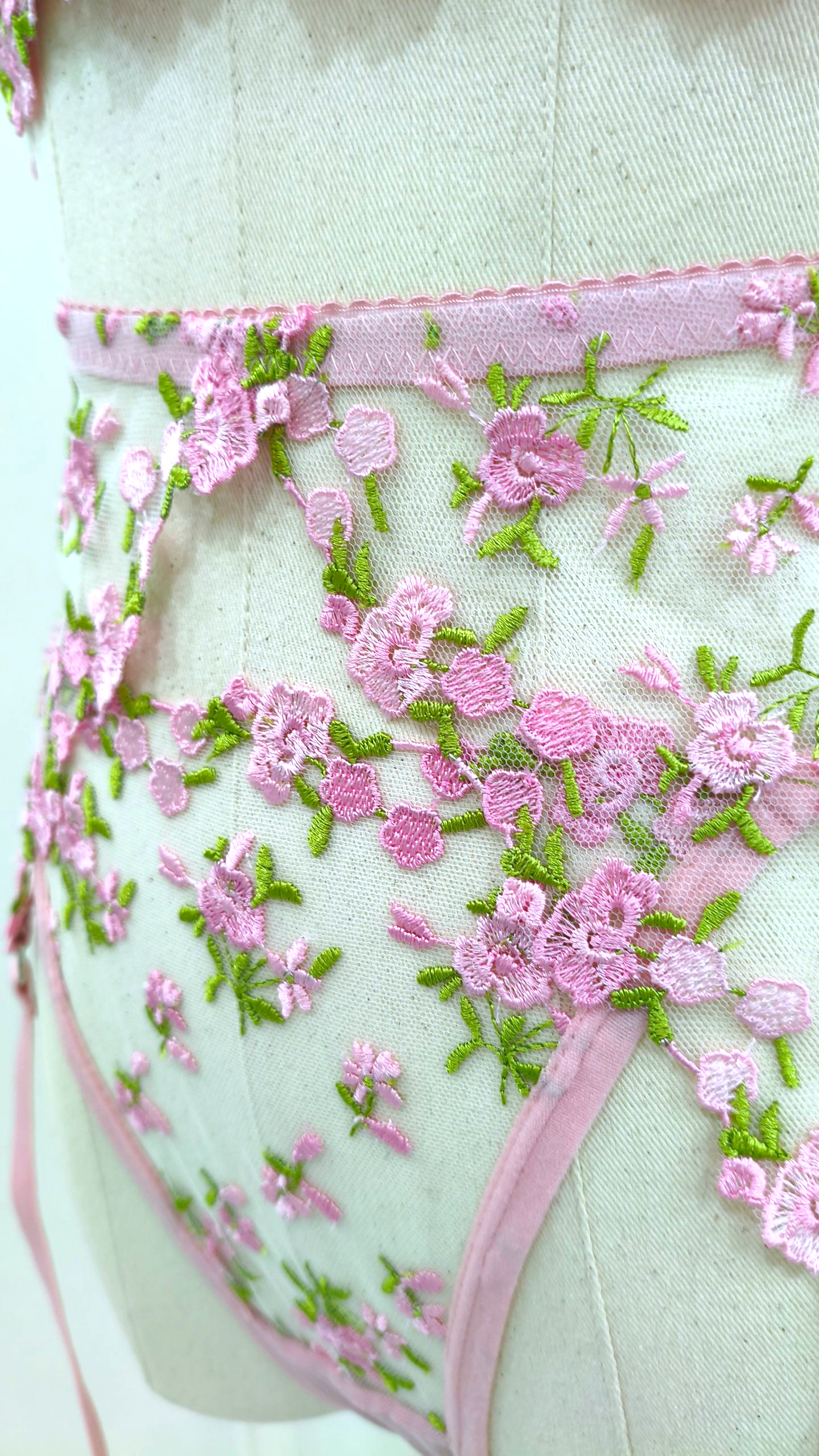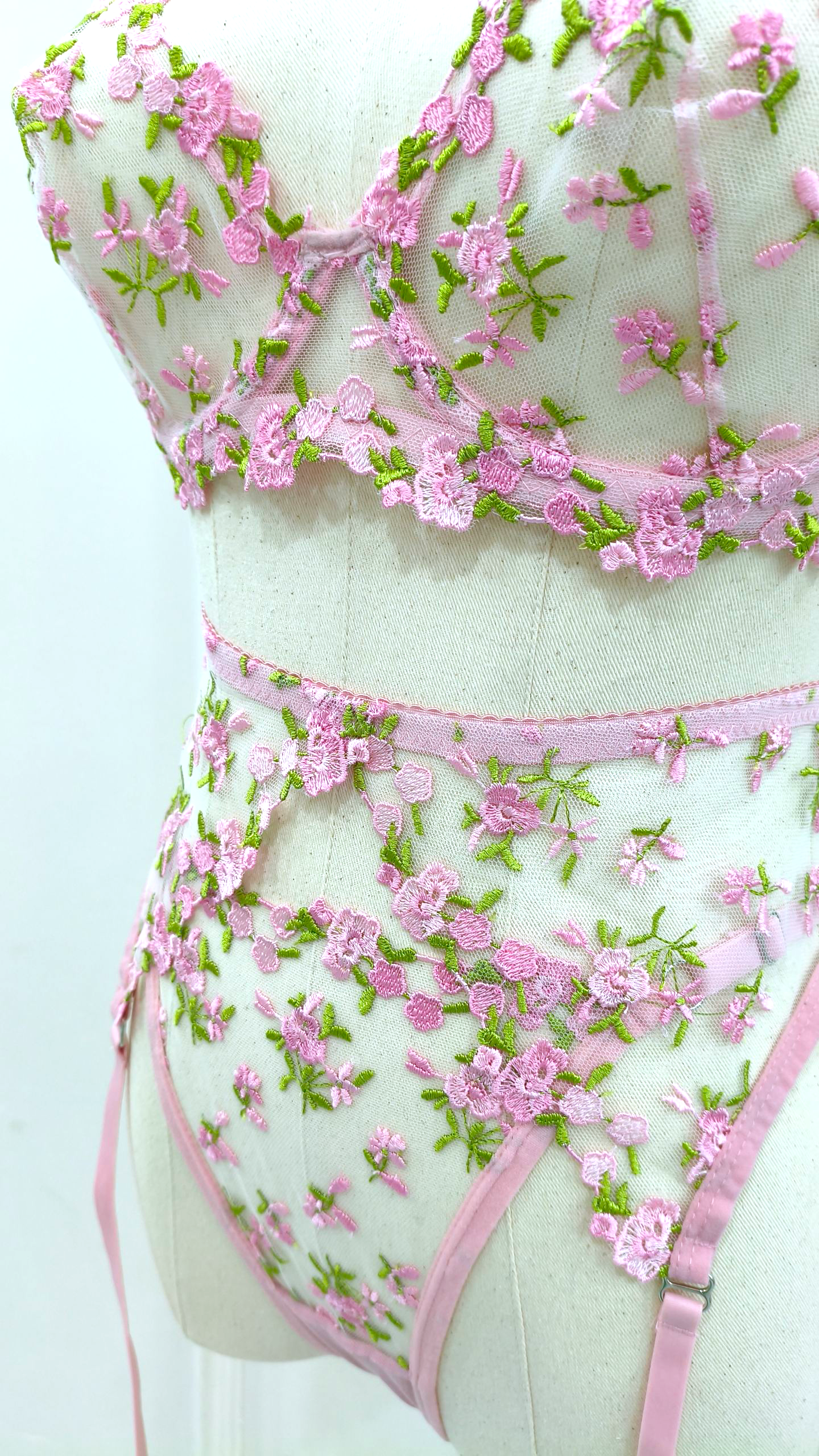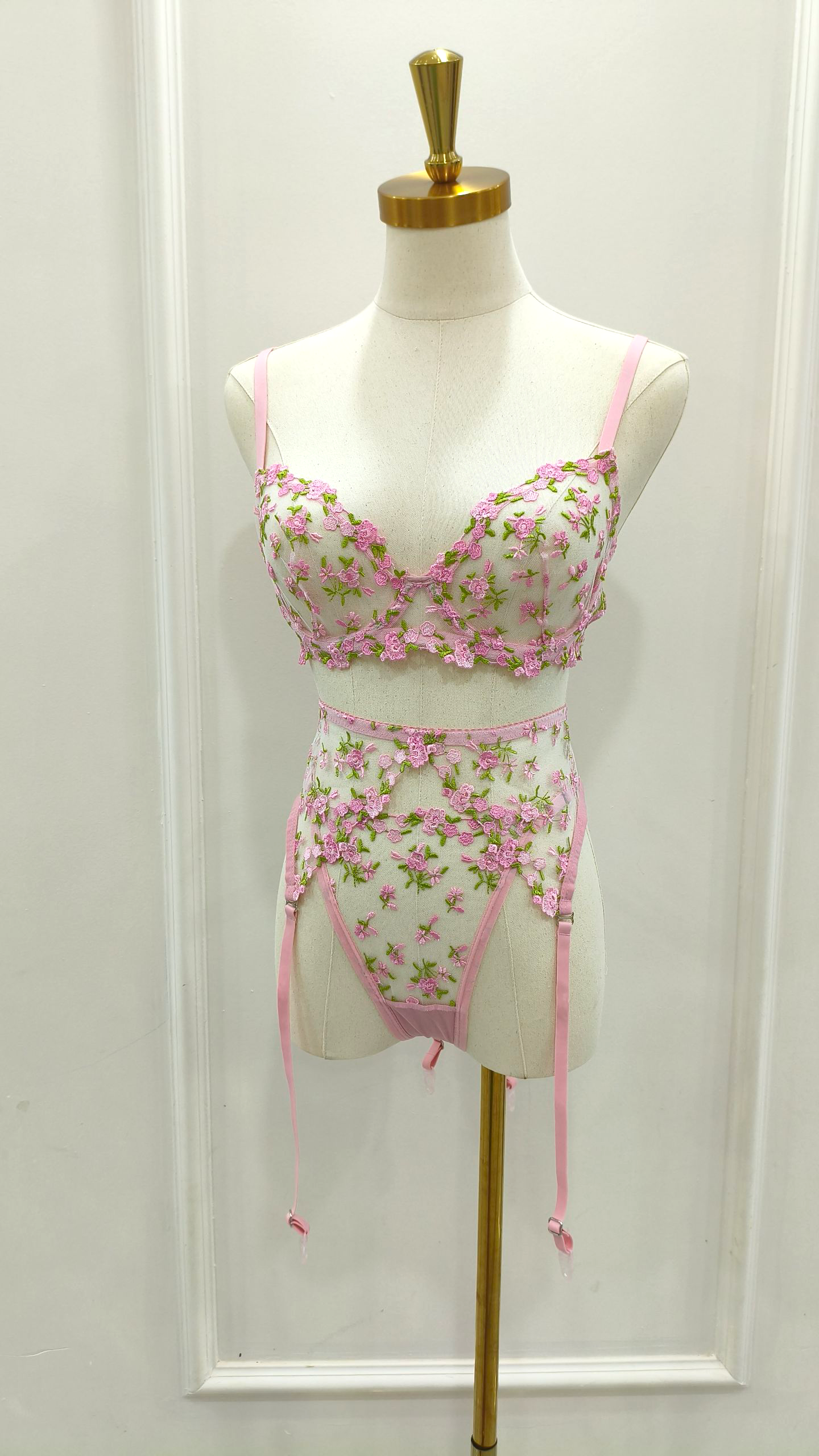 Un ensemble d'inspiration à la foi poetique et très bohème en tulles brodé de petite fleures roses et de bourgeons tel un beau jardin d'été. Ses armatures apportent un excellent soutien et ses bonnets souples sans coussinets allient confort et sensualité.